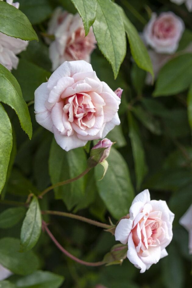 This is an extremely vigorous heirloom rose, discovered in the United States at the end of the 19th century as a sport of the beloved small French shrub rose, ‘Cécile Brünner.’ Often found rambling in old cemeteries and homesites, it is extremely vigorous, relatively easy to care for, and produces beautiful, fragrant little flowers that look like perfectly miniature hybrid tea roses. It’s also Paula’s favorite! Like all roses in Central Texas, be prepared to provide lots of morning sun, protection from afternoon sun in the summer, drip irrigation (no sprinklers near those leaves, please!), and regular acidic fertilizer and deadheading.